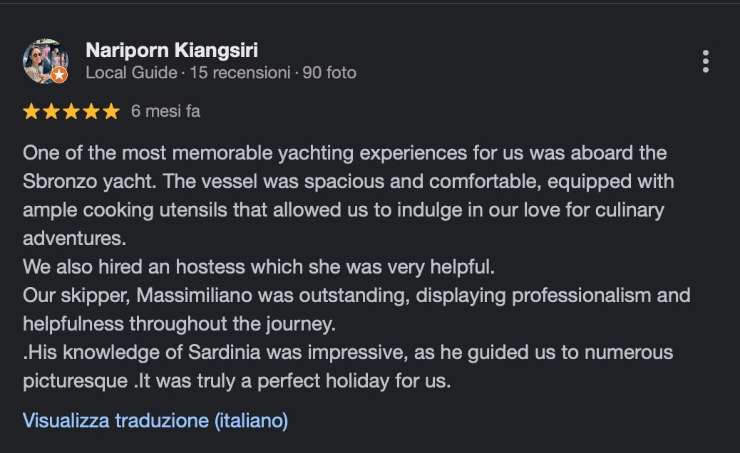 Our skipper, Massimiliano was outstanding, displaying professionalism and helpfulness throughout the journey.